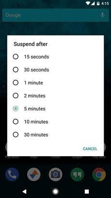 - Raak Slaapstand aan en selecteer de tijdsduur van inactiviteit voordat uw telefoon in de slaapstand gaat.